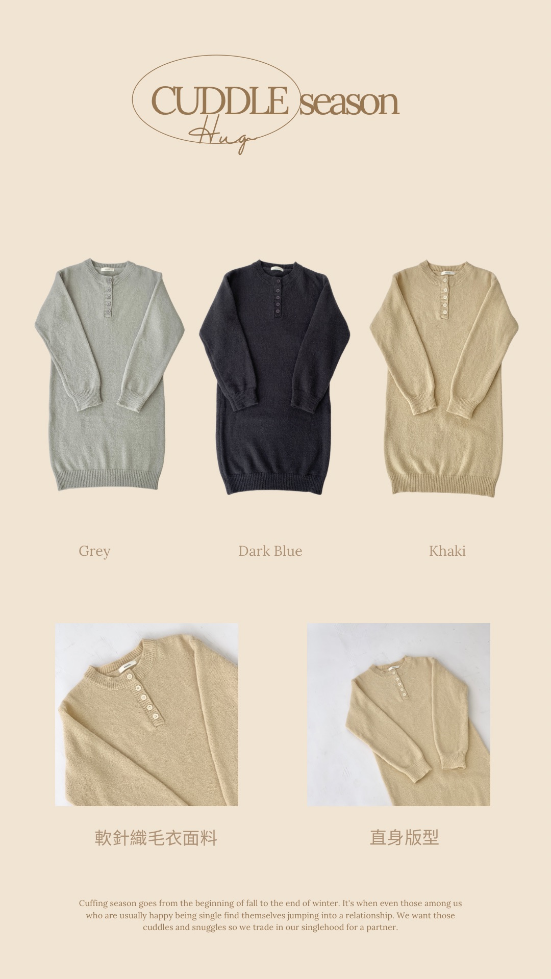 Cozy慵懶針織過膝連衣裙 (Almond)