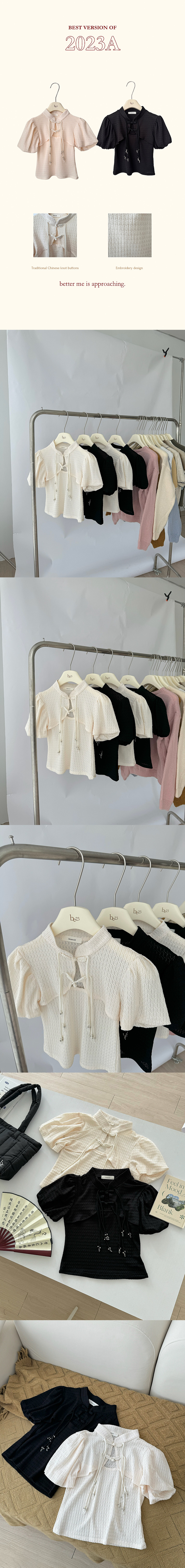 中式小立領搭配中國結盤扣/打褶泡泡袖/顯瘦修身版型