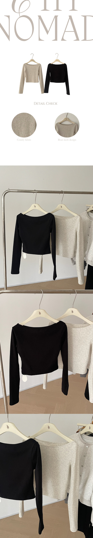 Off Shoulder 船領一字肩棉質短上衣(Grey)